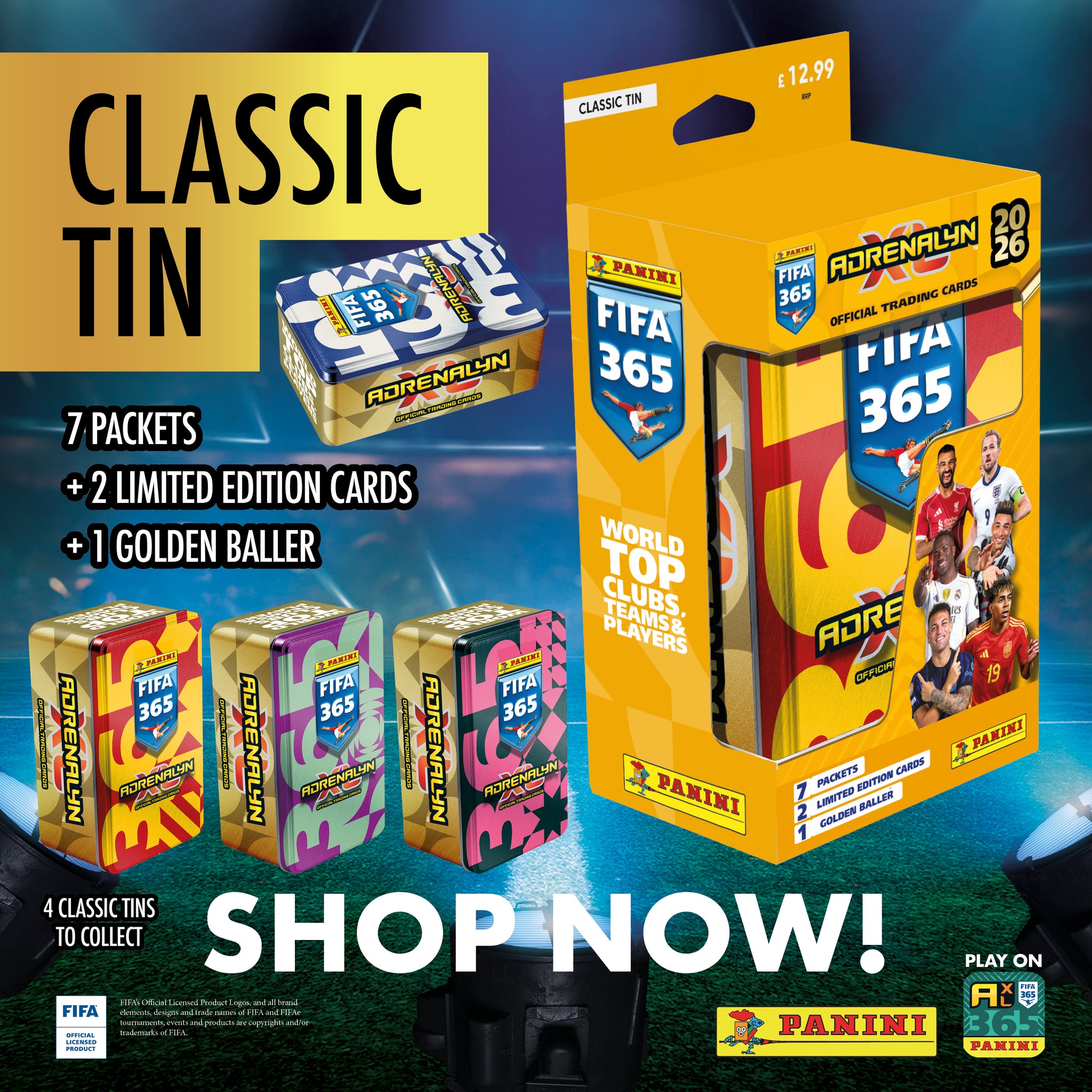 The 2025-26 Panini Adrenalyn XL FIFA 365 Cards Mega Tin and collection is all about the team – and with the right players, anything’s possible. Panini FIFA 365 Adrenalyn XL™ is back and is BETTER THAN EVER. Whether you're new to the Adrenalyn XL™ game or already a mega-fan, this brand-new collection won't disappoint! It features over 300 players across 11 epic card sets to collect, trade, and show off!
